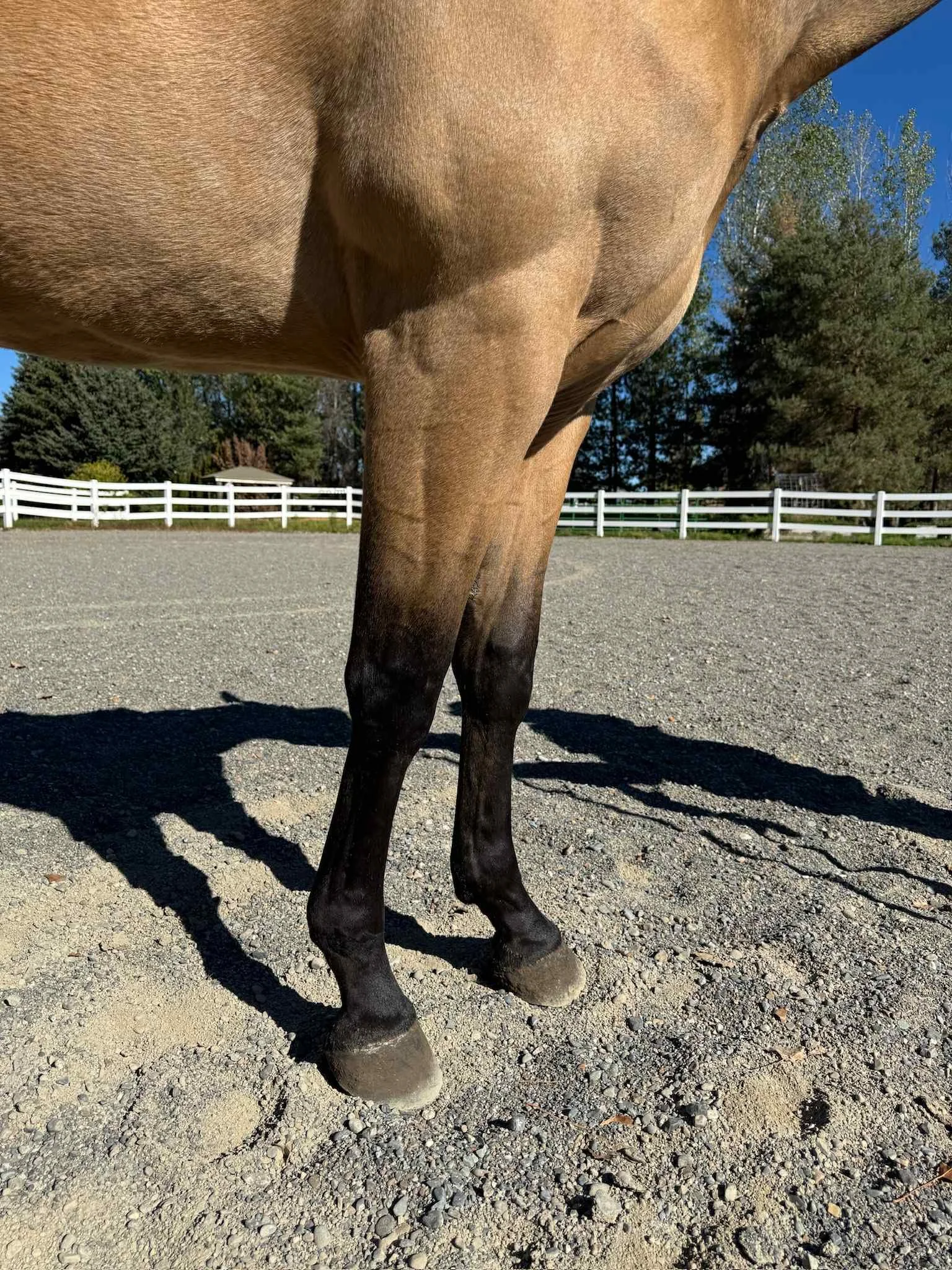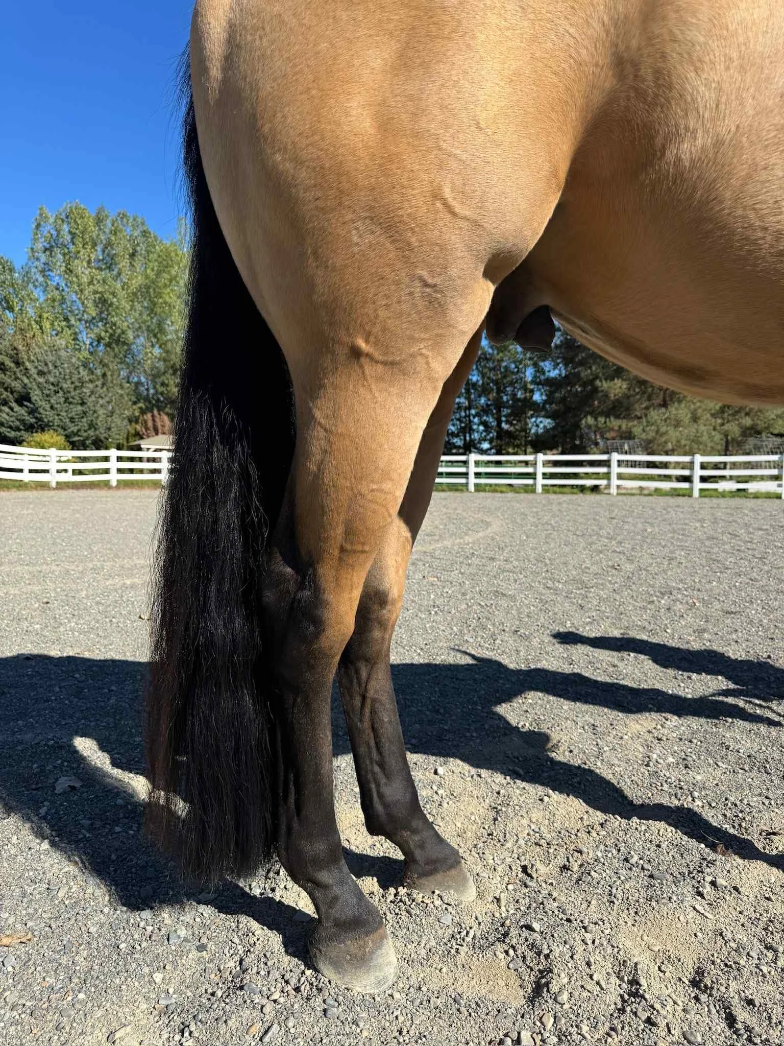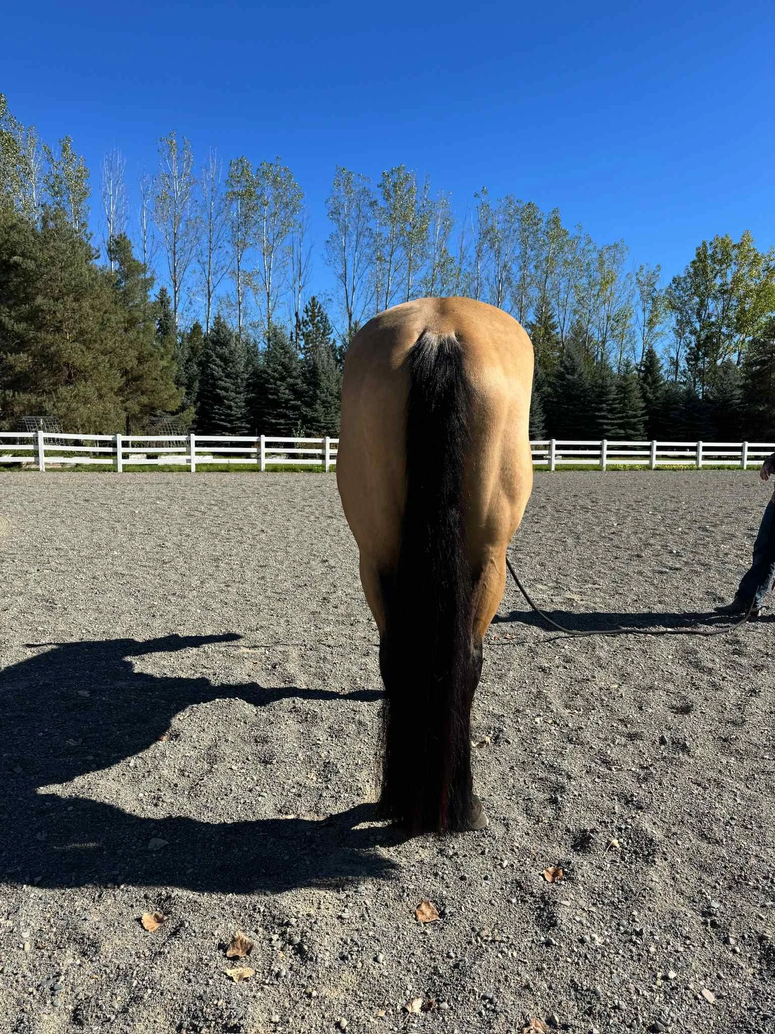“Dutton” is very kind, polite, and a lovely mover. He has been started under saddle slow and correct to give him time to grow. Dutton currently measures 15.3 hh at the withers and 16.1 hh at the hip. He has been hauled to several shows for experience and handled the trips well.