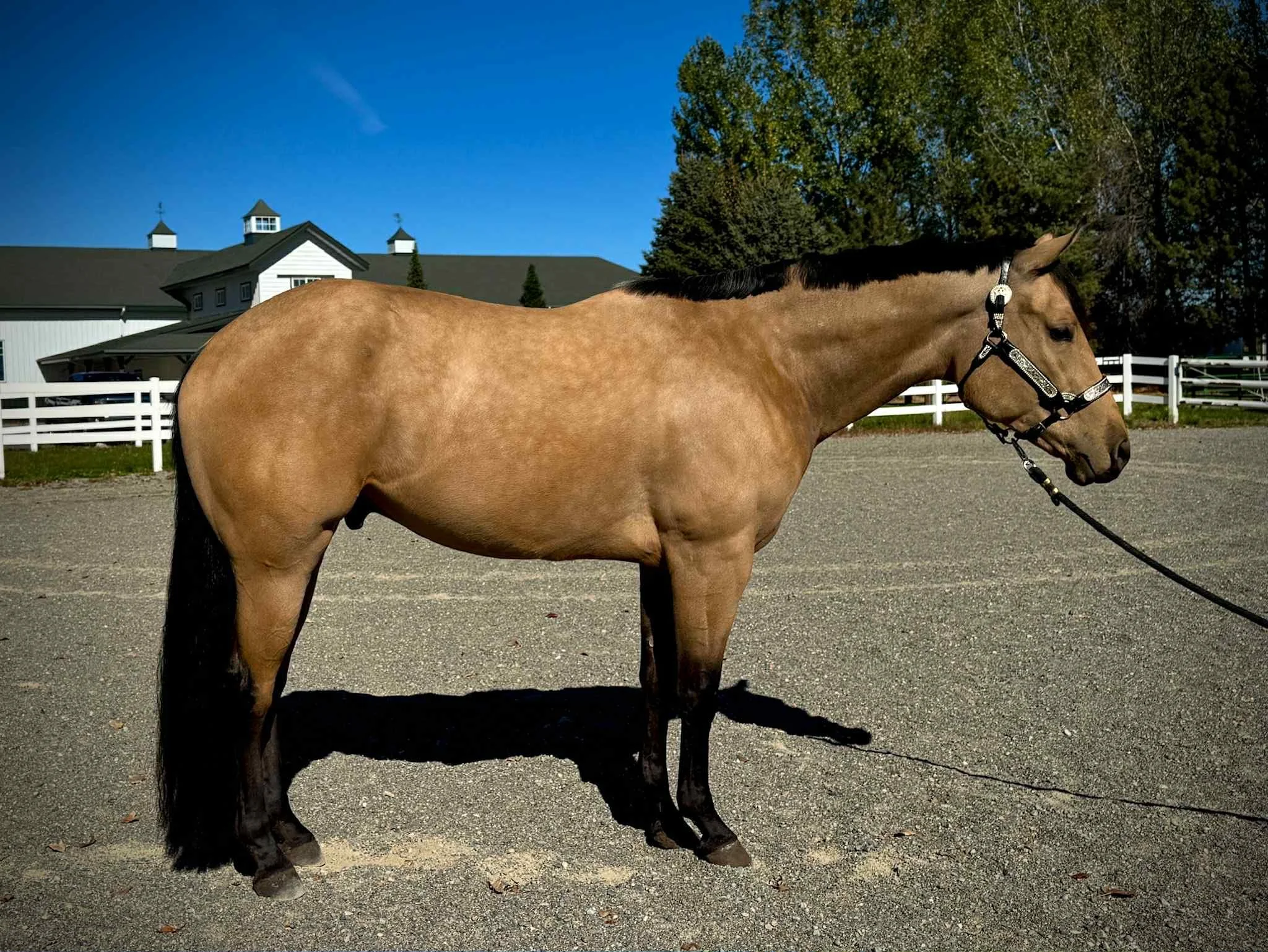 2022 buckskin AQHA/ABRA gelding by World Champion earner and sire, Wing Mann (Batt Man), and out of an own granddaughter of Zippos Mr Good Bar.