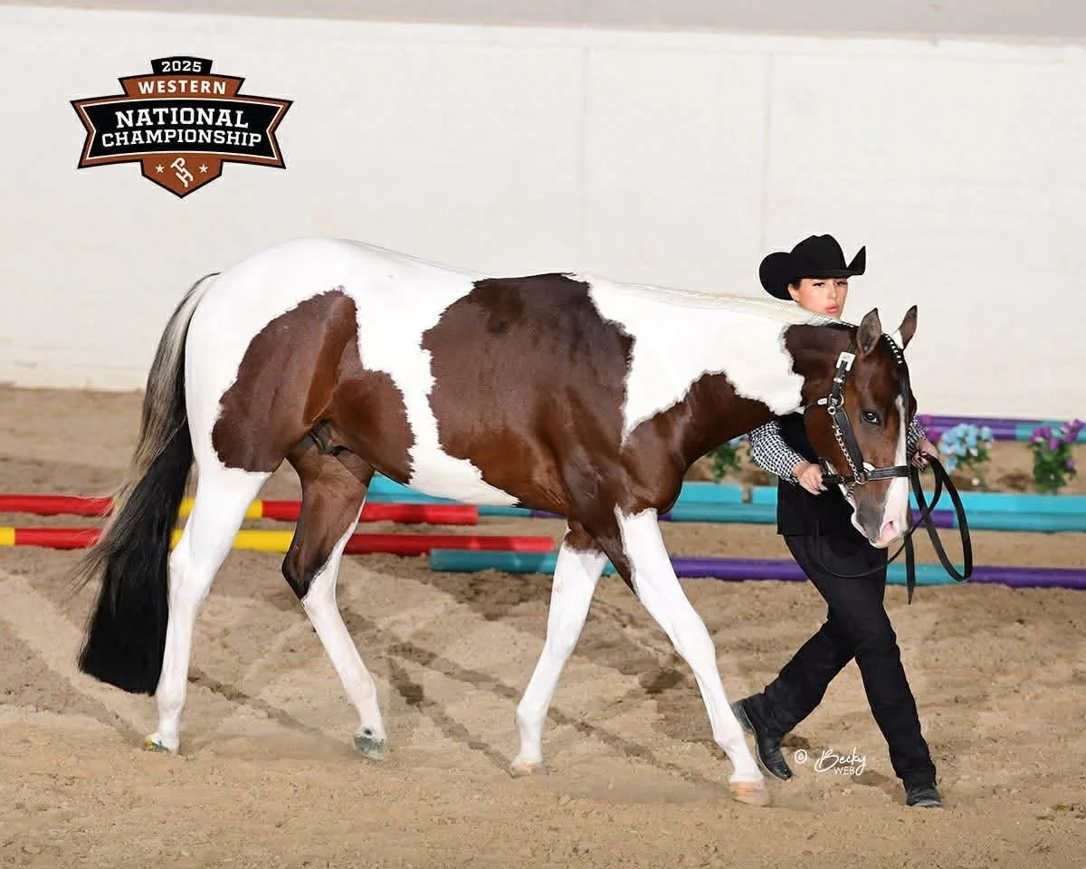 “Pumpkin” is a 3/4 sister to the well-known and incredibly talented gelding, The Marshalls In Town. She is also the full sister to an APHA Bronze National Champion, multiple Top 5, and Top 10 earner. Pumpkin is kind, trainable, and confident. She has been saddled and ground driven, clips, hauls, and stands for the farrier. The only reason Pumpkin is available is due to the lack of APHA shows in the area. She should finish around 15.3 hh and has a clean vet report/x-rays from Nov 2024. Pumpkin is enrolled in APHA Breeder’s Trust and is eligible for other programs including NSBA CBCF, NSBA SIF, and Cash 4 Color.