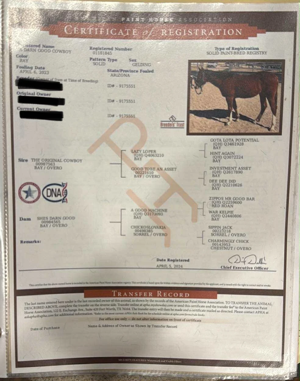 2023 bay APHA gelding by numerous World Champion sire, The Original Cowboy (Lazy Loper), and out of Register of Merit earning own daughter of A Good Machine (Zippos Mr Good Bar).