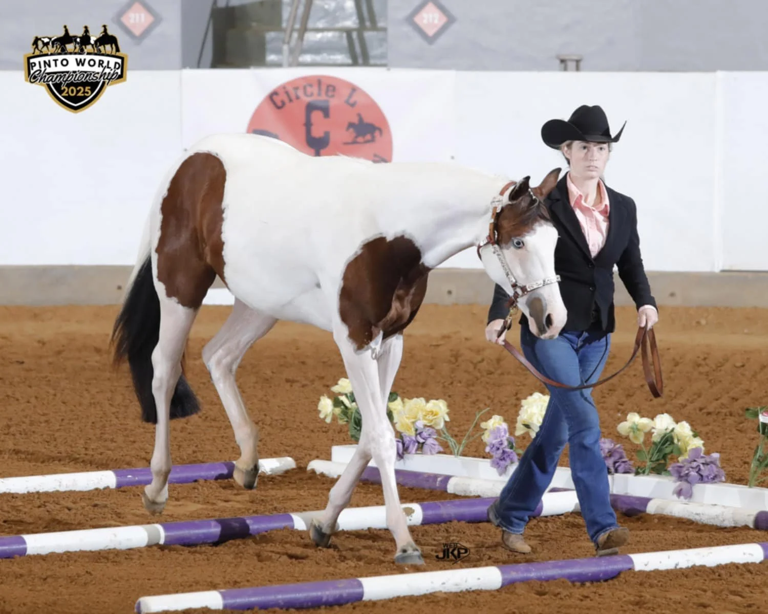 “Quill” is a full brother to a Reserve World Champion and multiple Futurity Champion. He is a numerous Top 5 and Top 10 earner himself at the PtHA World Show and Color Breed Congress. Quill is chill, trainable, and eager to please. He is amateur bred, owned, trained, and shown. Quill should finish around 15.3 hh and is 5-panel negative through parentage. He is enrolled in APHA Breeder’s Trust, NSBA IF, and eligible for other programs including Cash 4 Color.