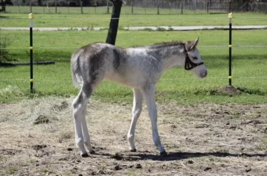 2021 gray overo APHA mare by The Sugar Daddy (A Good Machine) and out of a daughter of Its All In My Jeans/granddaughter of Skys Blue Boy.